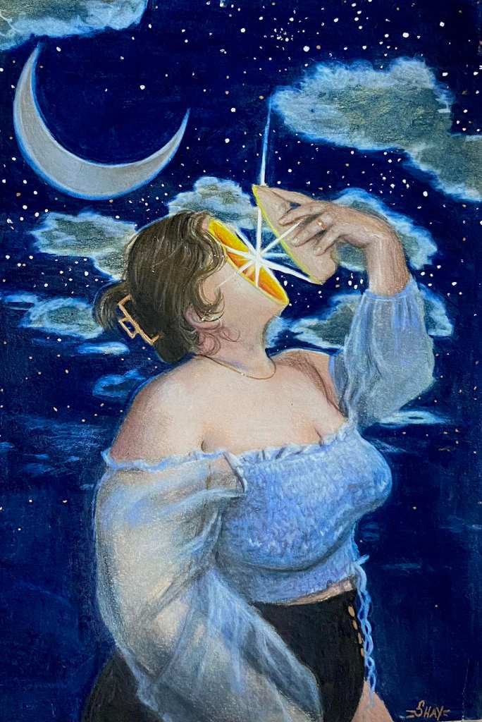 Shay’s work doesn’t just catch the eye – it pulls. It abducts. There’s a quiet confidence in every piece that makes you feel like you’re seeing something private and holy. The kind of art that you can’t just look at – you feel it.